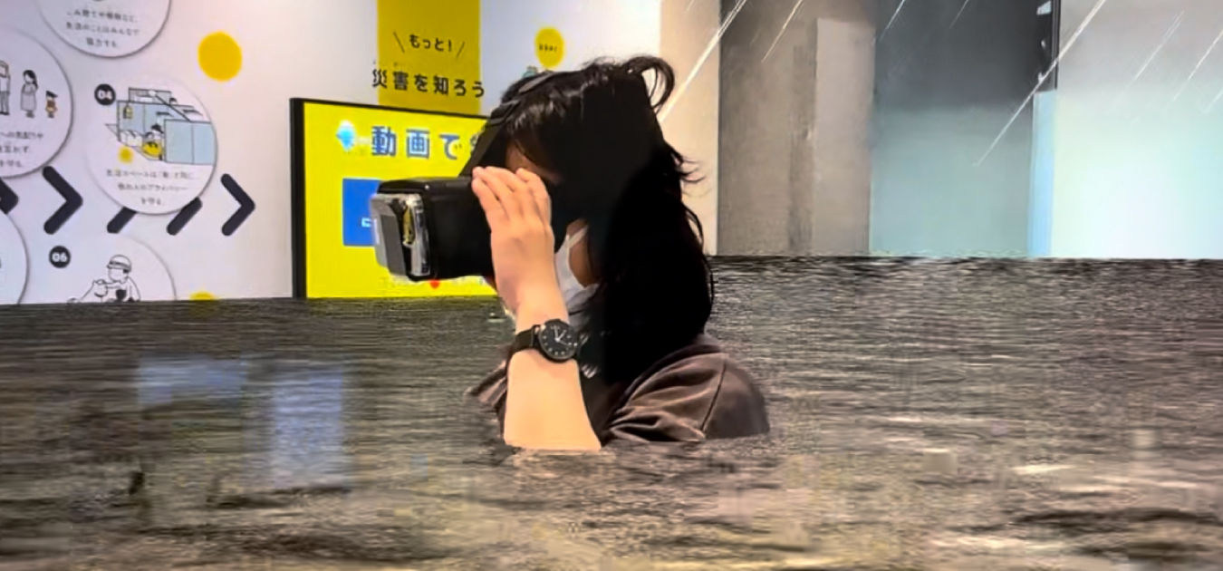 『浸水被害』可視化を研究している情報メディア学科 板宮研究室がAR災害疑似体験アプリ『Disaster Scope』を開発。このアプリはスマートフォンの位置情報と浸水データを照合し、津波や浸水に遭遇した際の現在地の状況の没入体験を可能にしました。