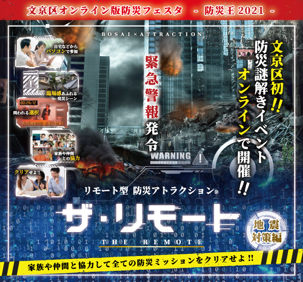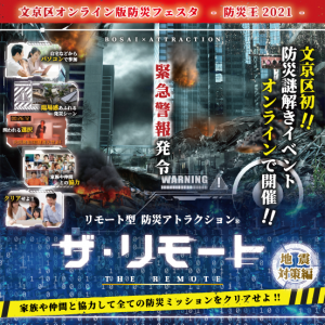 2021.3.6 文京区にて初開催‼「文京区オンライン版防災フェスタ -防災王2021- 『リモート型防災アトラクション® ザ・リモート 地震対策編』」