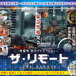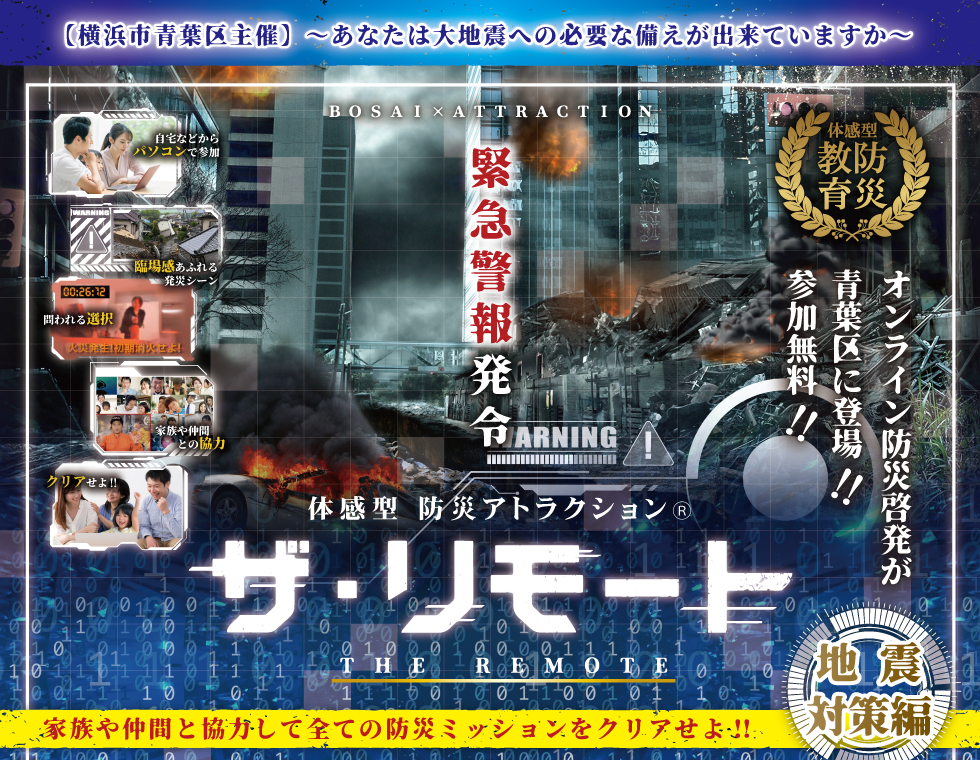『防災教育』×『エンターテーメント』を融合し、体育館や大型ホールなどで映像・音響・照明などを駆使し、臨場感ある災害現場を再現。迫り来る制限時間内で、家族や仲間と共に協力し合い、安全確保を目指す『脱出アトラクション』のスタイルを採用し、2015年3月に登場以来24都道府県にて開催、約6万人以上の動員となった人気の防災コンテンツに遂に『リモートバージョン』が登場‼
