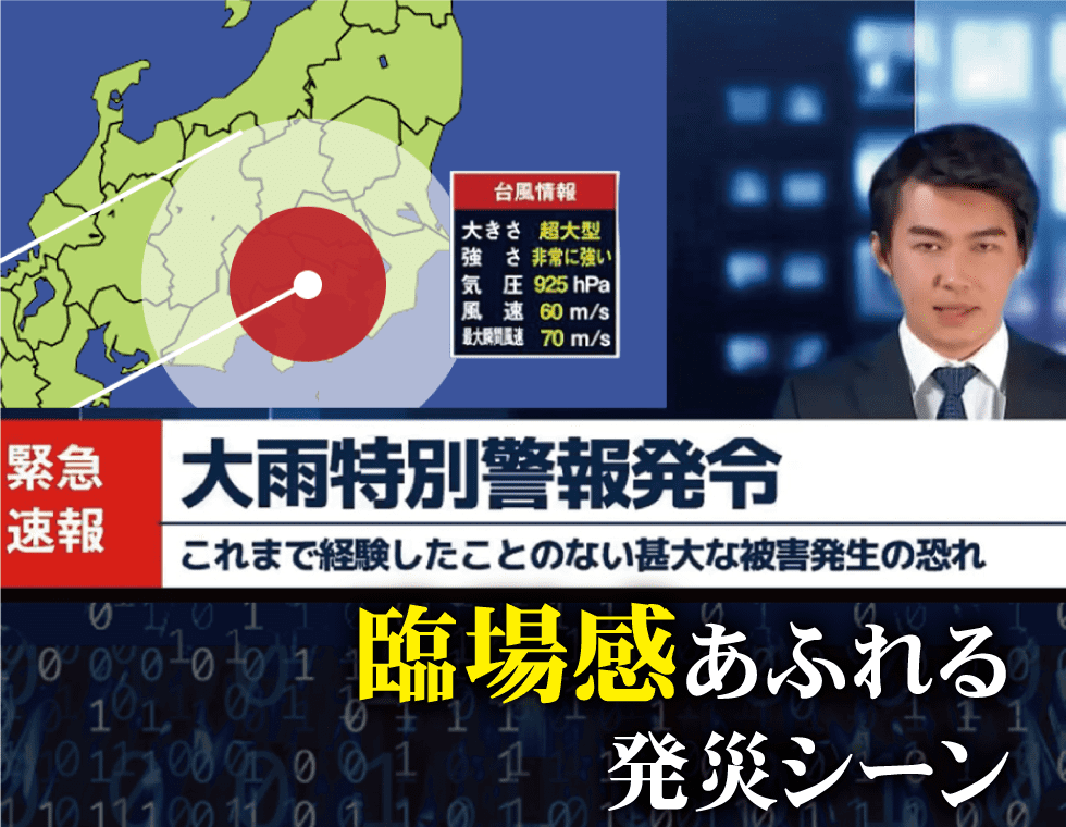 『防災教育』×『エンターテーメント』を融合し、体育館や大型ホールなどで映像・音響・照明などを駆使し、臨場感ある災害現場を再現。迫り来る制限時間内で、家族や仲間と共に協力し合い、安全確保を目指す『脱出アトラクション』のスタイルを採用し、2015年3月に登場以来28都道府県にて開催、約7万人以上の動員となった人気の防災コンテンツに遂に『リモートバージョン』が登場‼