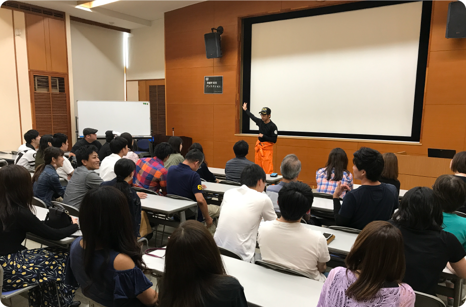 これらの要望に応えるべく、体感型のリアリティとリモート型の再現映像を活⽤したハイブリッド型の講演スタイルとなります。